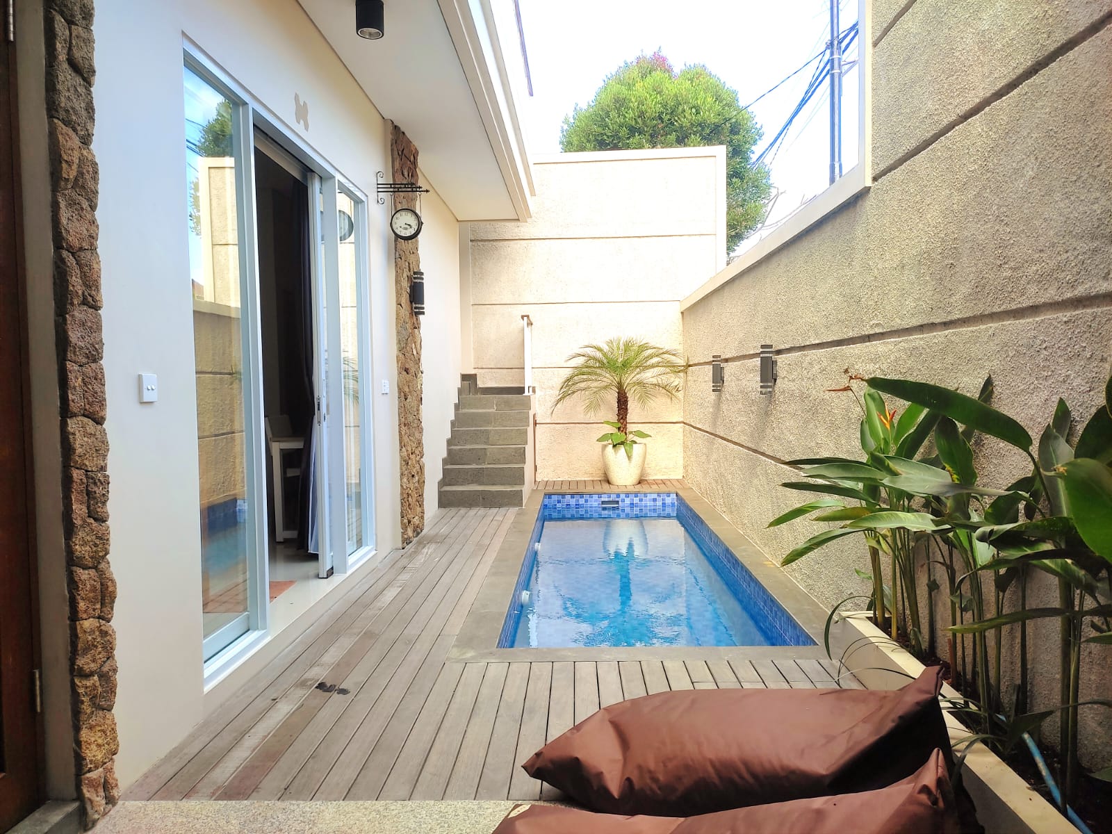 Simple house 🛌 2 bedrooms en-suite bathroom 🏊♀️ Swimming pool.🛀 bathtub 🅿 carport 📶 Wi-fi , 2 floors Rate: - Rp 1.000.000 / Daily - Rp 6.000.000 / Weekly - Rp 23 .000.000 / monthly